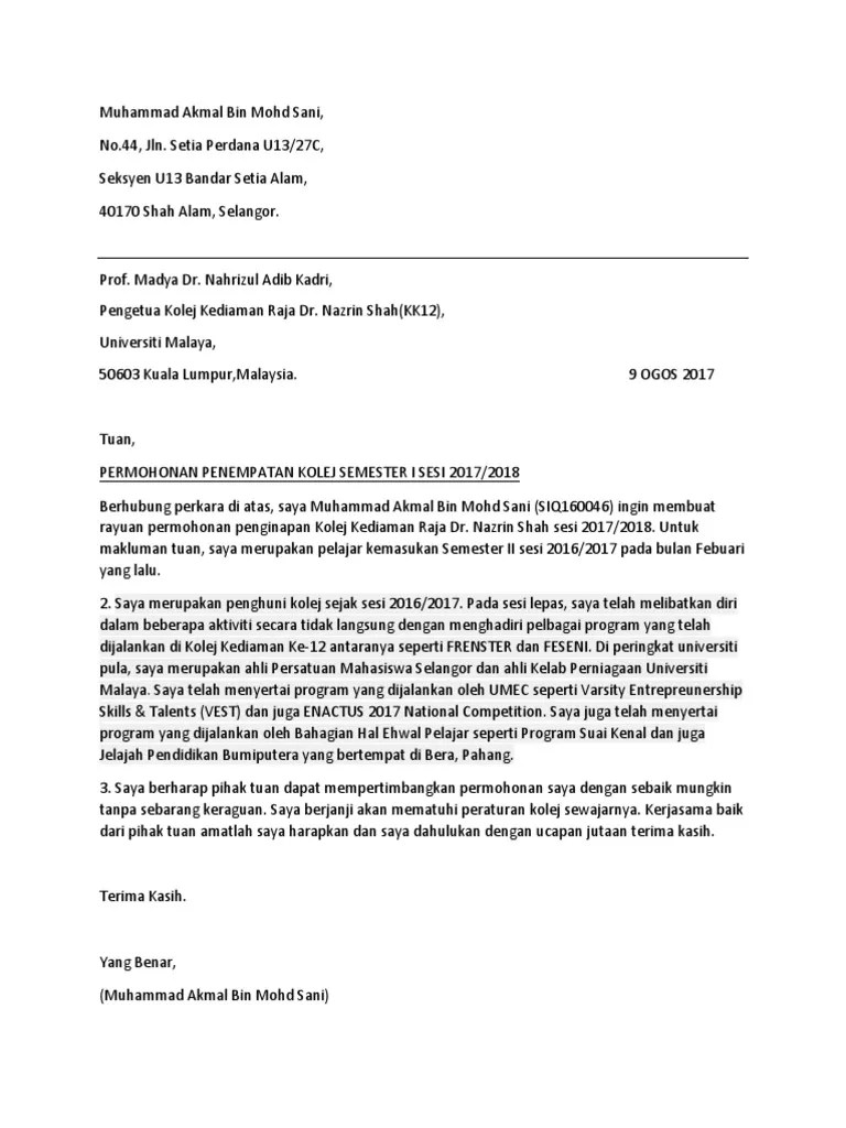 Related : Surat Rasmi Permohonan Penempatan Kolej Kediaman / Surat rasmi permohonan penempatan kolej kediaman via hilimgc.pw..
